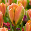 Løgbutikken Tulipan 'Orange Marmalade' Viridiflora, Smuk papaya-melon orange-gul med let pink, og grønne flammer på siden, forrygende smuk. Ca. 40-50 Cm. April-Maj.
