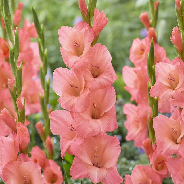 Storblomstrende gladiolus er kendt for at blomstre om sommeren, normalt fra midt på sommeren til tidlig efterår. De imponerende blomsterstængler gør dem til et spændende indslag i haven, både til bede og som snit til buketter.